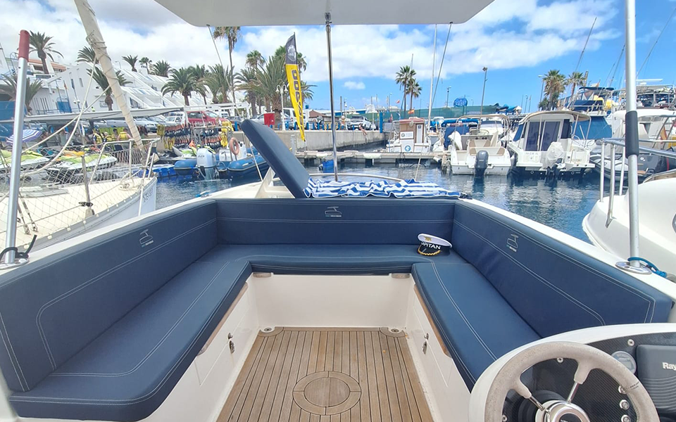 Alquila tu barco sin licencia navega por las costa del sur de Tenerife, disfruta en pareja, familia y con amigos, serás el capitán a bordo del barco.